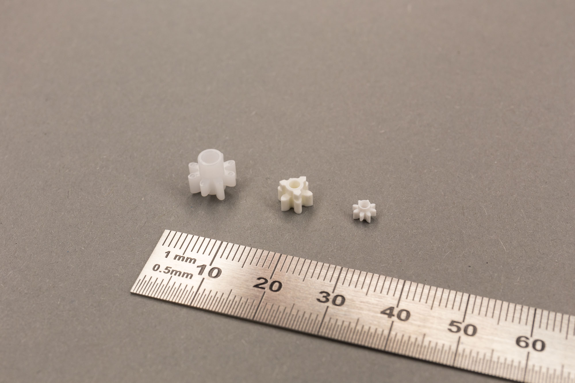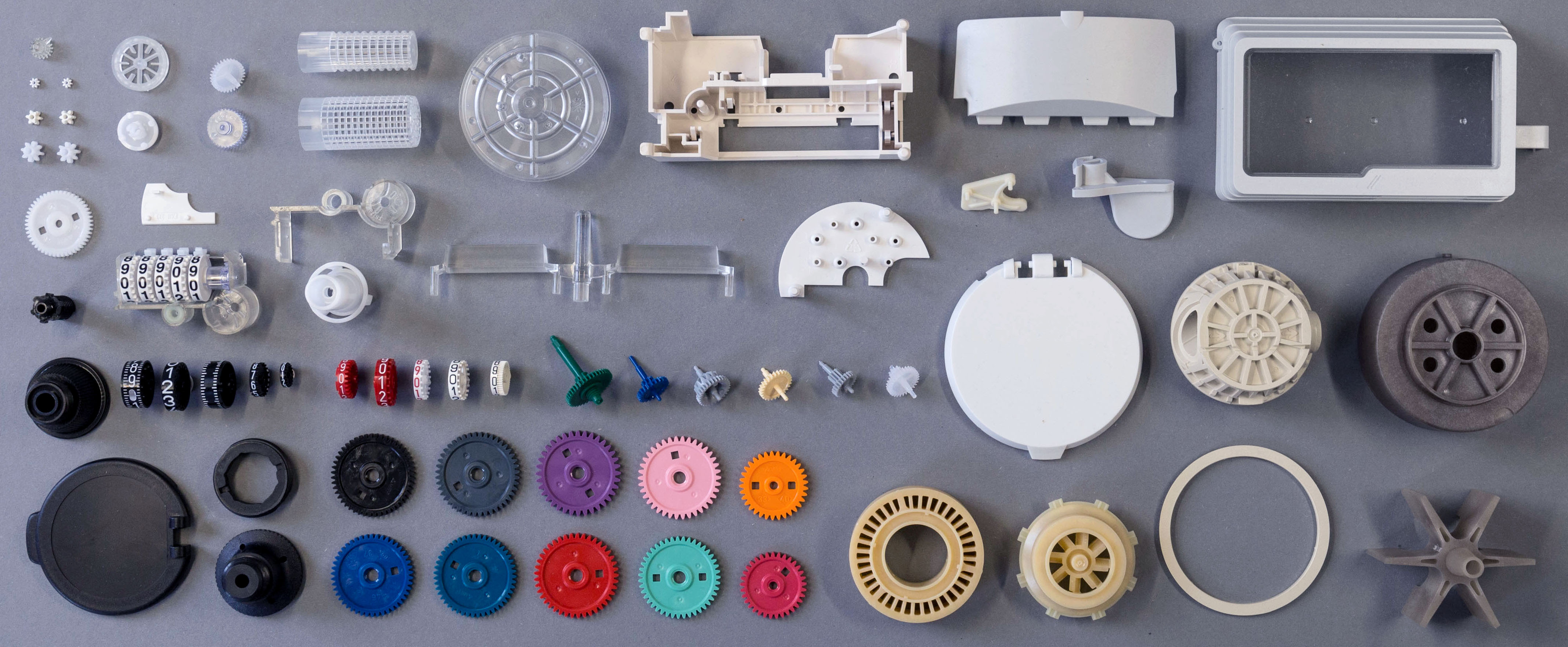 Wir fertigen Präzisionskunststoffteile mit Gewichten vom Milligramm-Bereich bis zu ca. 1000 Gramm. Zu unserer Produktpalette zählen Teile für die Zählwerksindustrie und den Bereich Feinmechanik.