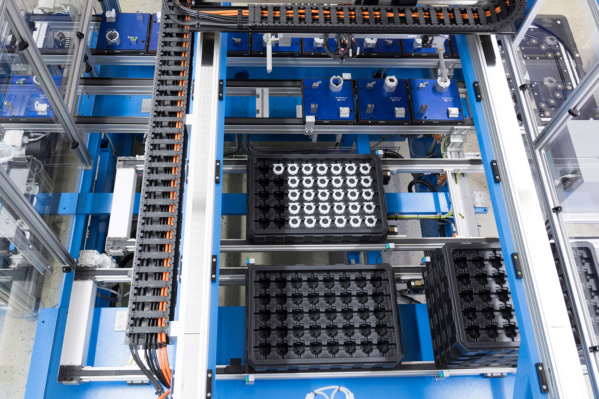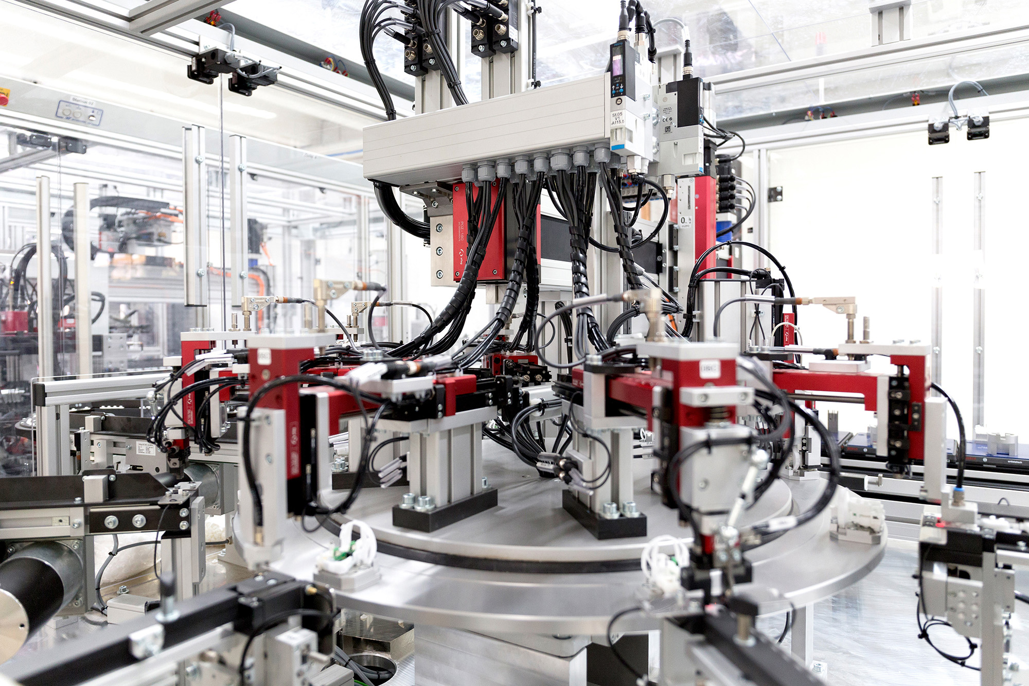Unsere vollautomatischen Montagelinien erlauben eine ungewöhnlich hohe Montagequalität und eine 100%–Prüfung der montierten Baugruppen, selbst bei hohen Stückzahlen.